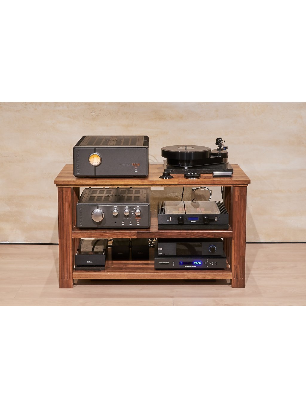 Elektronkový externí napájecí zdroj RöNt III, raménko 12.1, přenoska PI MC, Protractor pro precizní nastavení raménka a přenosky, signálový kabel Esprit Lumina DIN/XLR 1,2m, zakázkový plexi kryt.
