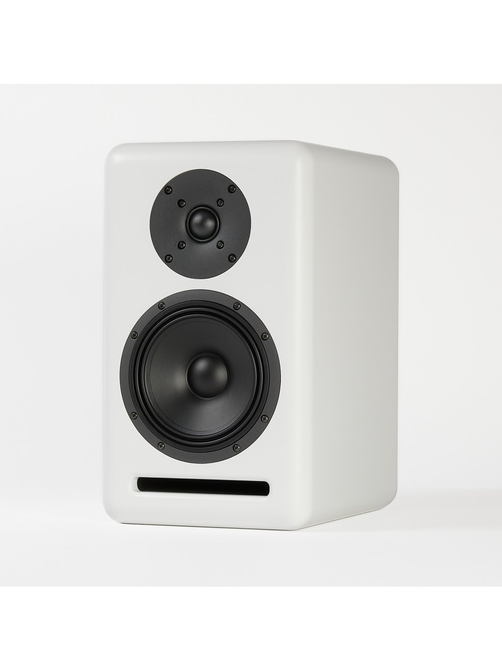 Dvoupásmový tlumený bass-reflex, „Fase Zero“ řešení, Mundorf kondenzátory a velmi přesné odpory a tlumivky. |