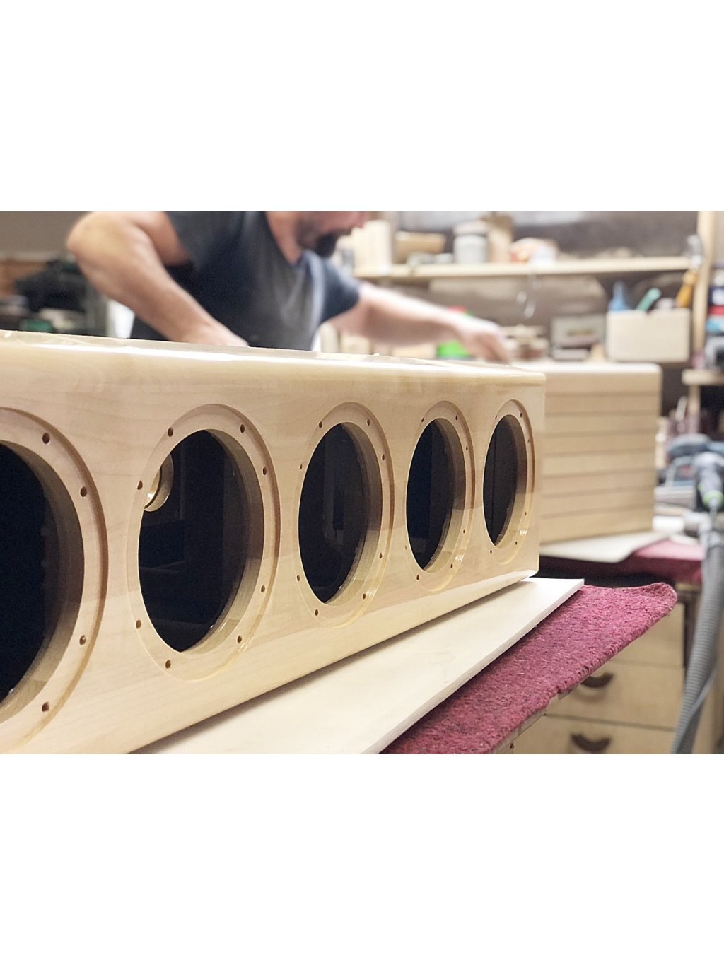 4 kusy 175 mm AudioBarletta – speciální impregnovaná papírová membrána, litý koš, hliníkový fázový nástavec, extrémní magnetický „motor“, extrémní výkmit, extrémní odezva, 50 mm cívka |