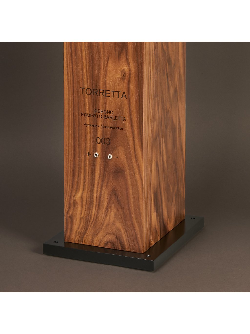 Malý-velký sloupek Torretta se pyšní velkým zvukem, stavícím na našem dlouholetém know-how. Využíváme zde komponenty značky AudioBarletta, vyráběné v Itálii, klasický výškový reproduktor doplňují rovnou tři středobasy. Díky nim má Torretta vyšší citlivost, aby dobře hrála též potichu v běžných domácích podmínkách, ale i hlubší bas a vůbec větší, plnější a živější přednes, než byste od kompaktních ozvučnic čekali. Díky přednímu bassreflexu pak není problém s provozem poblíž zdí v běžném pokoji.