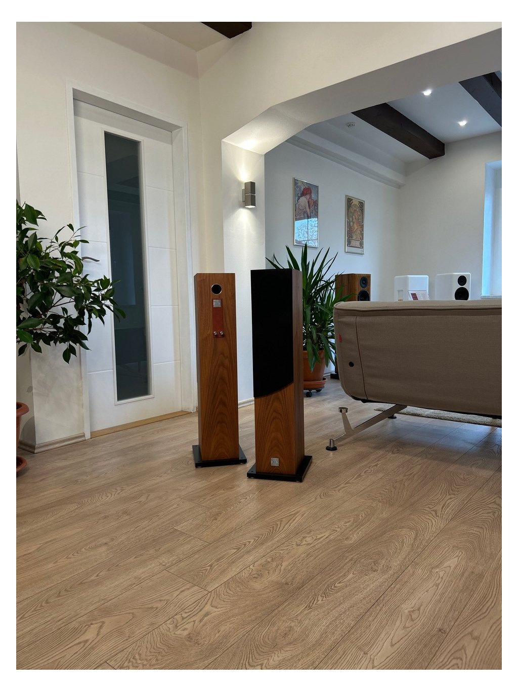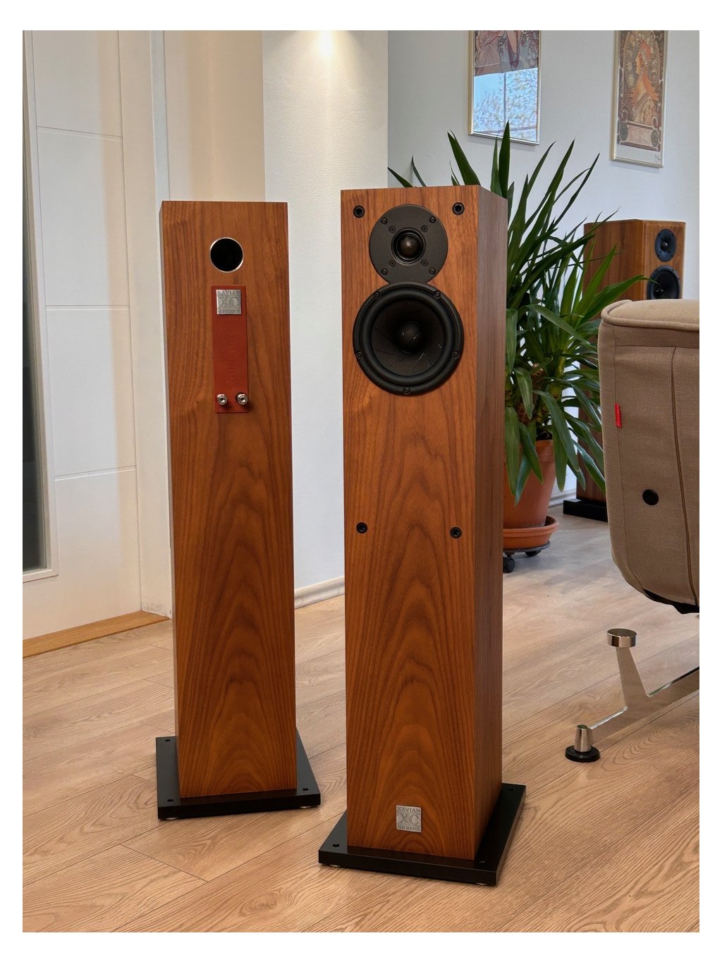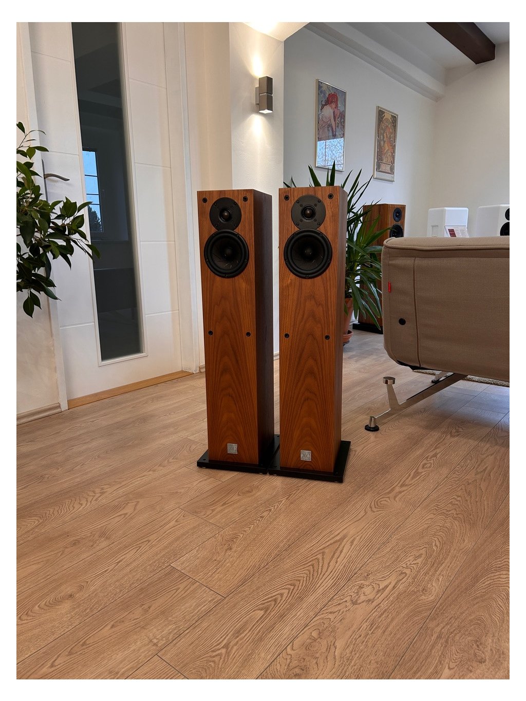 Díky použití superlativních měničů Scan-Speak serie Revelator jsou dosažené výsledky překvapující - prostorová scéna plastická a hmatatelná, velmi nízká tendence k ostrosti, a nevídaný basový rozsah se smyslem pro rytmiku. Vysoká přirozenost a "odlehčení od korpusu" je pro hudbu zaručena použitím filtrů prvního řádu. Doporučujeme vybrat zesilovač se silnou dynamickou rezervou a vysokou proudovou schopností.