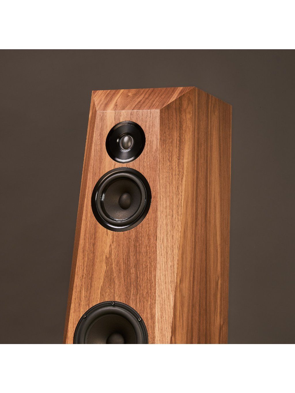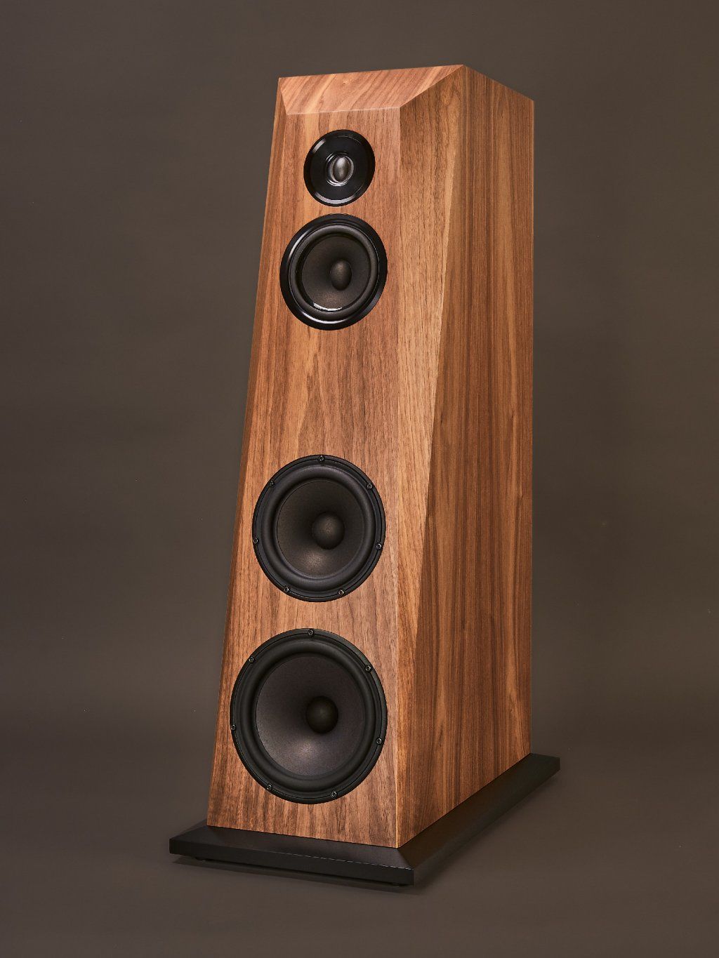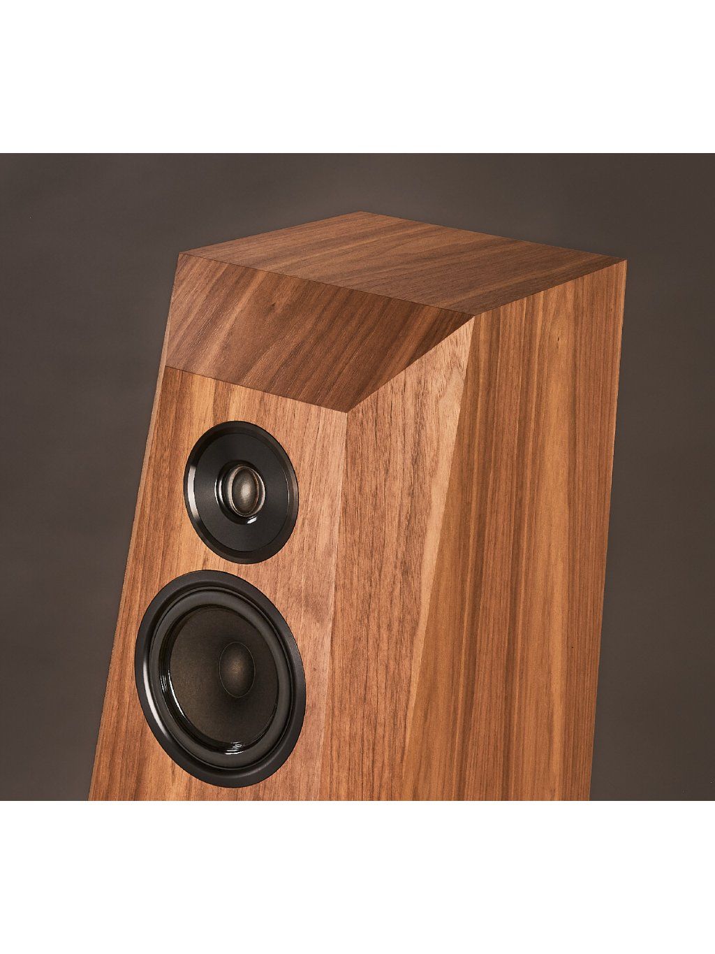 ručně dýhovaná, používá MDF a komplexní vnitřní systém vzpěr proti parazitním rezonancím s tlumením třemi komplementárními materiály. Čelní panel o síle 9 cm. |