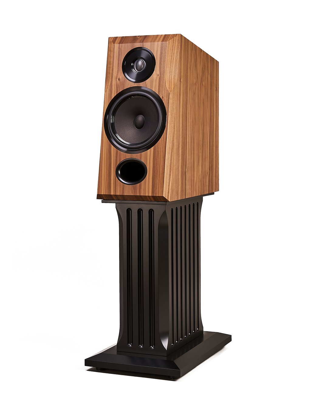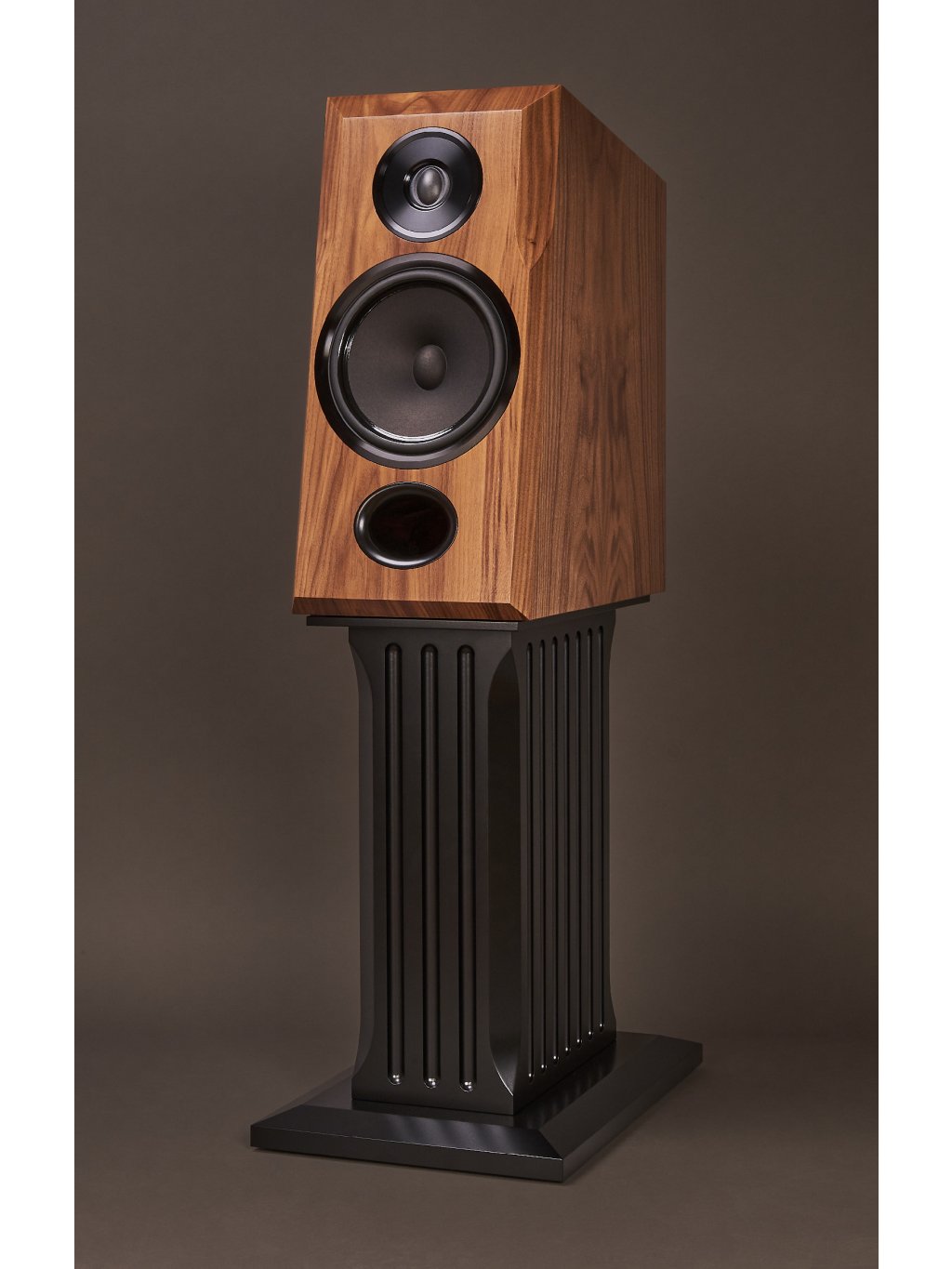 Ozvučnice | ručně dýhovaná, používá MDF a komplexní vnitřní systém vzpěr proti parazitním rezonancím s tlumením třemi komplementárními materiály |